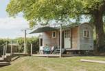 This lovely little hut is just the tonic for some quality time away with that special someone. Inside, you will find a cosy living space, designed perfectly for two. Full of countryside charm and thoughtful touches, you are bound to feel completely at home from the moment you arrive. The comfy double bed is nestled to the right of the hideaway, the most idyllic place to rest your head after a day of adventures. When morning arrives, embrace a slow start with breakfast in bed, open up the door to the hideaway and allow fresh countryside air to flow through with ease. Watch some TV or simply listen to the sound of birdsong and delve into a good book. To the left, there is a sweet wood-burner to keep you toasty throughout the seasons and a compact kitchen area complete with all the essentials. The shower room is beautifully presented, perfect for freshening up after a countryside ramble.